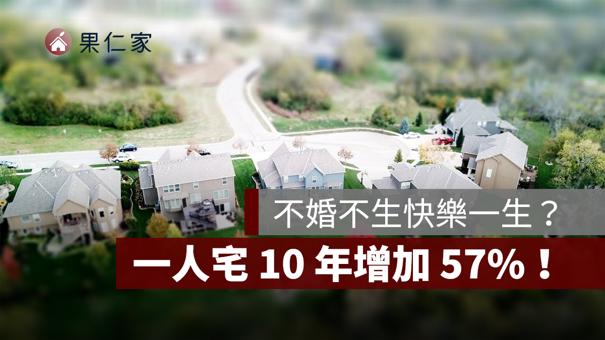 根據不動產資訊平台資料顯示,全台的 2 人宅、3 人宅 10 年來增加了 36% 與 18%,不過觀察發現一人宅的增加速度最快,全台一人宅的數量寫下新高的 248.8 萬宅,10 年來增加了 57%,原因包括節稅需求分戶、單身人口增加、獨居老人數量增加等因素有關。