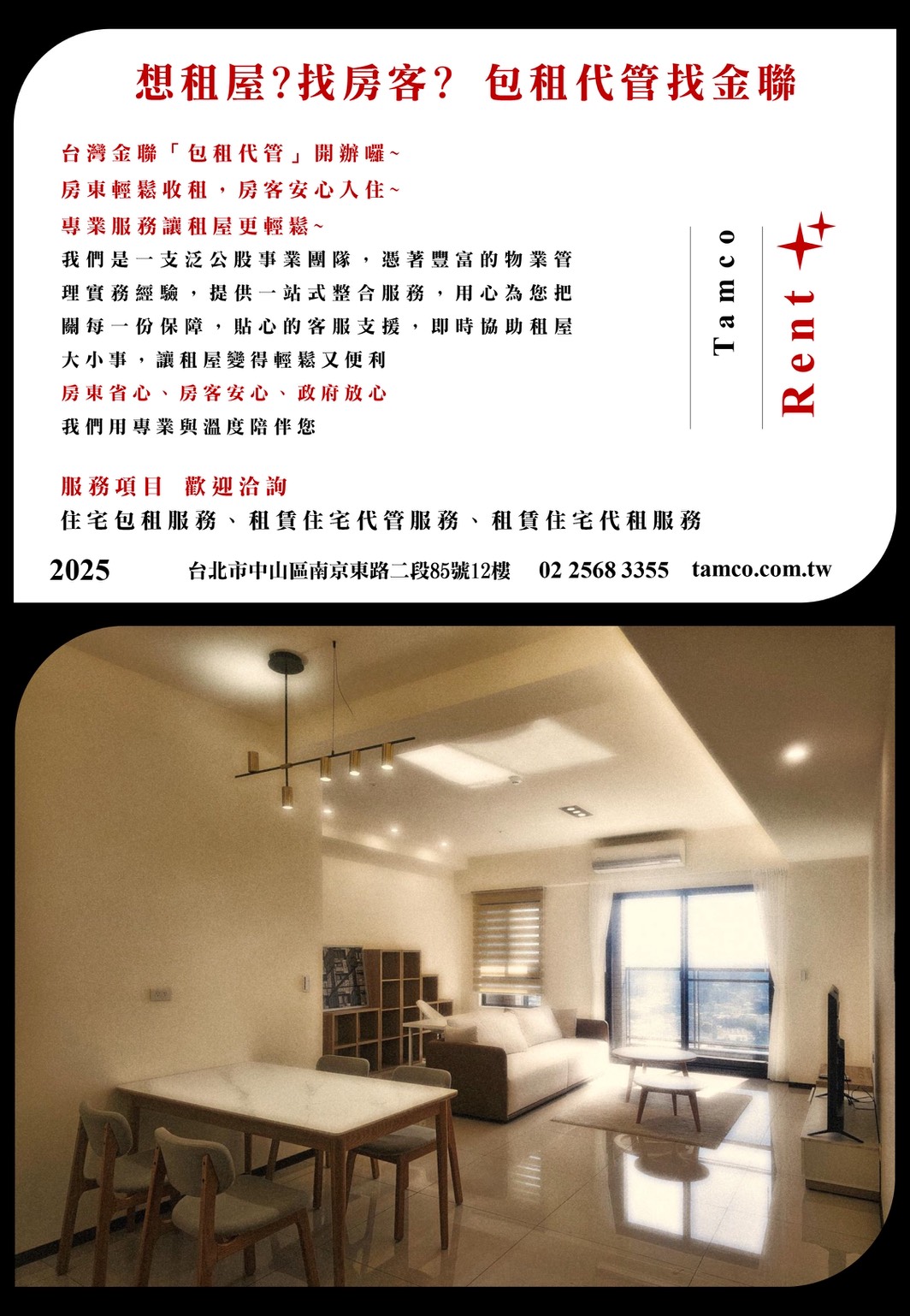 台灣租屋市場再添重要新選擇,國家級資產管理公司「台灣金聯」於 11/11 正式推出包租代管服務,主打由專業團隊協助房東管理出租事務,同時為房客打造更透明、安全的租賃環境。這項服務由公營背景與專業管理能力支撐,被視為 2025 年租屋市場的重要改革亮點。