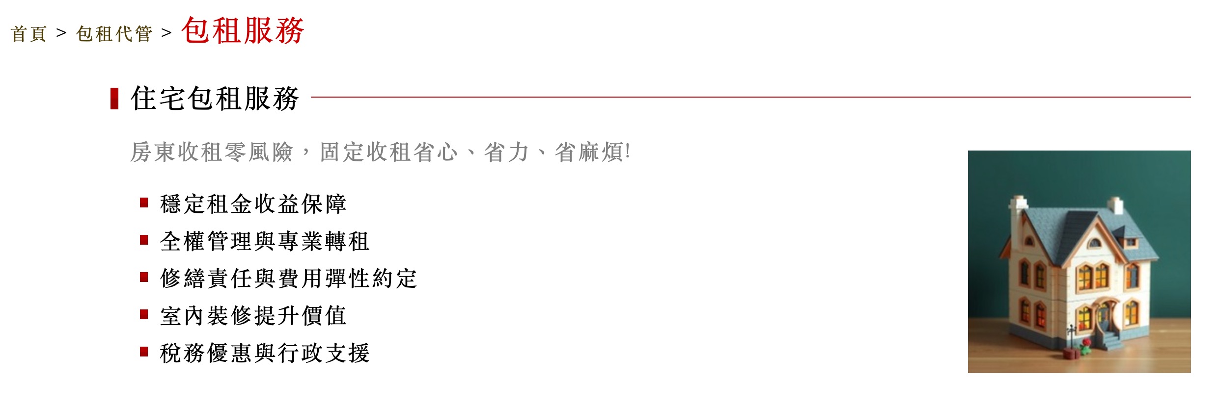 台灣金聯的強項在於具備國家級資產管理背景,過去累積大量不動產與物業管理經驗。本次包租代管服務結合: