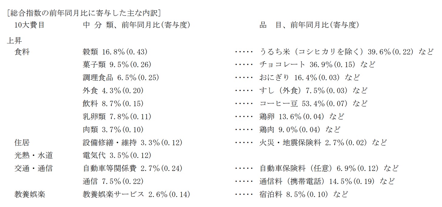 從「扣除生鮮食品與能源」的核心核心 CPI 年增 3.1% 來看,日本並不是只有受到國際原物料或油價的影響,而是: