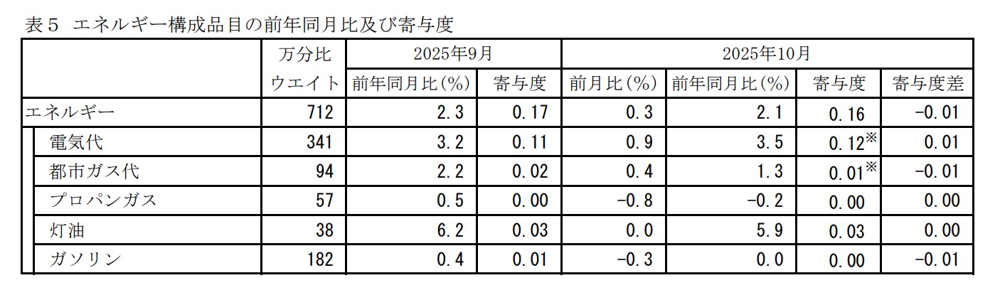 能源方面,10 月整體能源價格年增約 2% 左右,對 CPI 的拉抬貢獻其實不算大,原因在於日本政府持續提供電費、瓦斯費補貼。