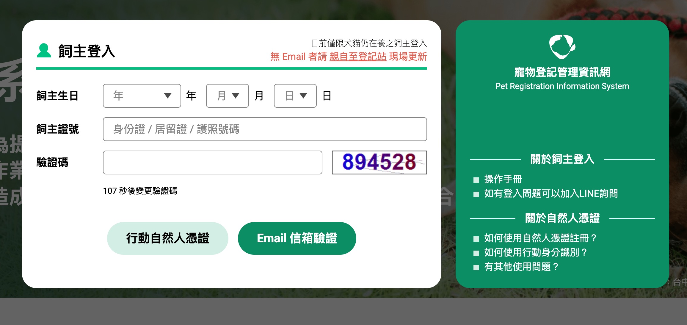 目前飼主可攜帶犬貓前往各縣市動物保護主管機關或寵物登記站辦理相關手續,完成後,也能透過寵物登記管理資訊網的「飼主專區」,查詢名下所有犬貓的身分資料。