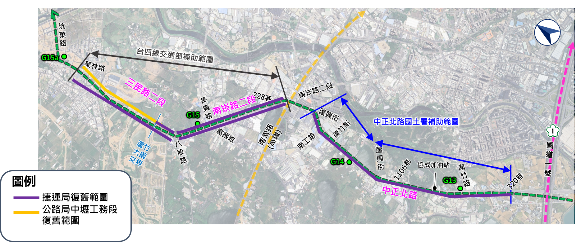 本次改善工程範圍西起大園區三民路二段,東至蘆竹區中正北路,捷工局希望趁捷運通車前,把車站周邊「走路、過馬路、轉乘」的痛點先處理掉,避免未來通勤人潮一進來,人行空間反而卡關。