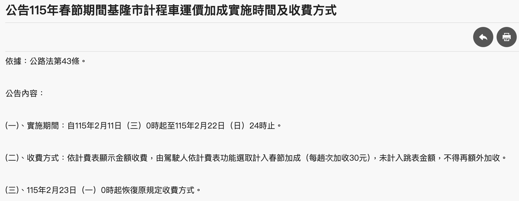 計程車春節收費:基隆