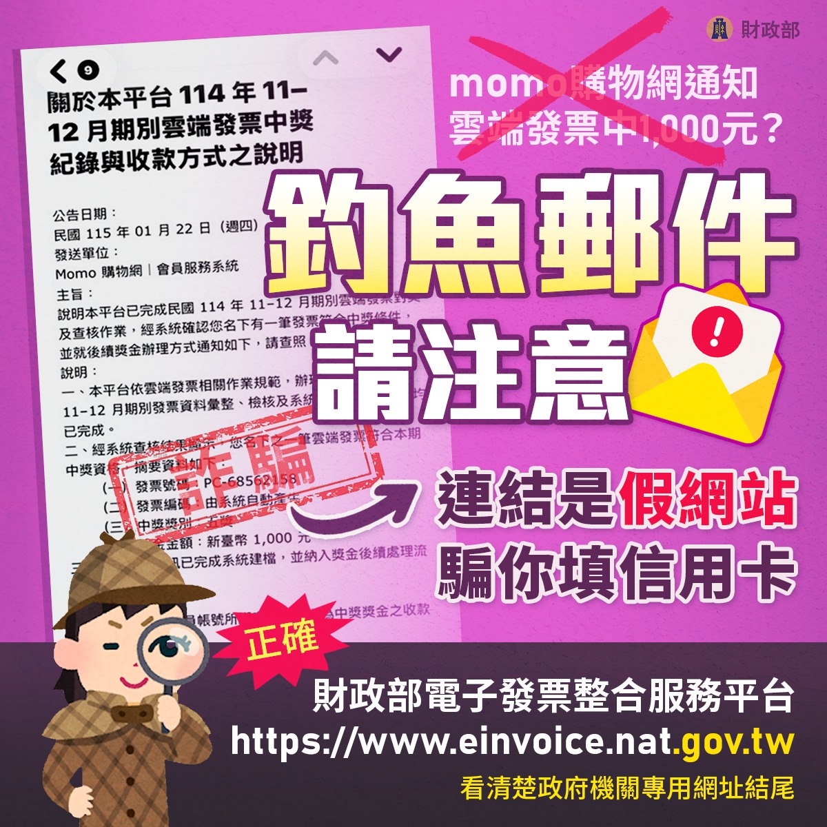 momo 發票中獎詐騙再現!收到「雲端發票中 1000 元」別點,財政部教你 1 招辨識