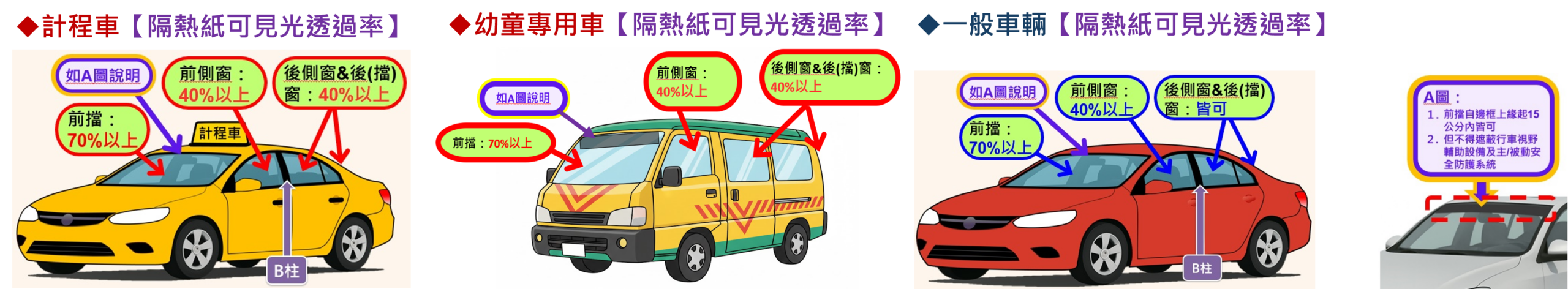 自 2026 年 2 月 28 日起,依《道路交通安全規則》第 39 條與第 39-1 條修正規定,新領牌照車輛黏貼隔熱紙必須符合可見光透過率標準。此規定僅適用於新領牌車輛,舊車不溯及既往。