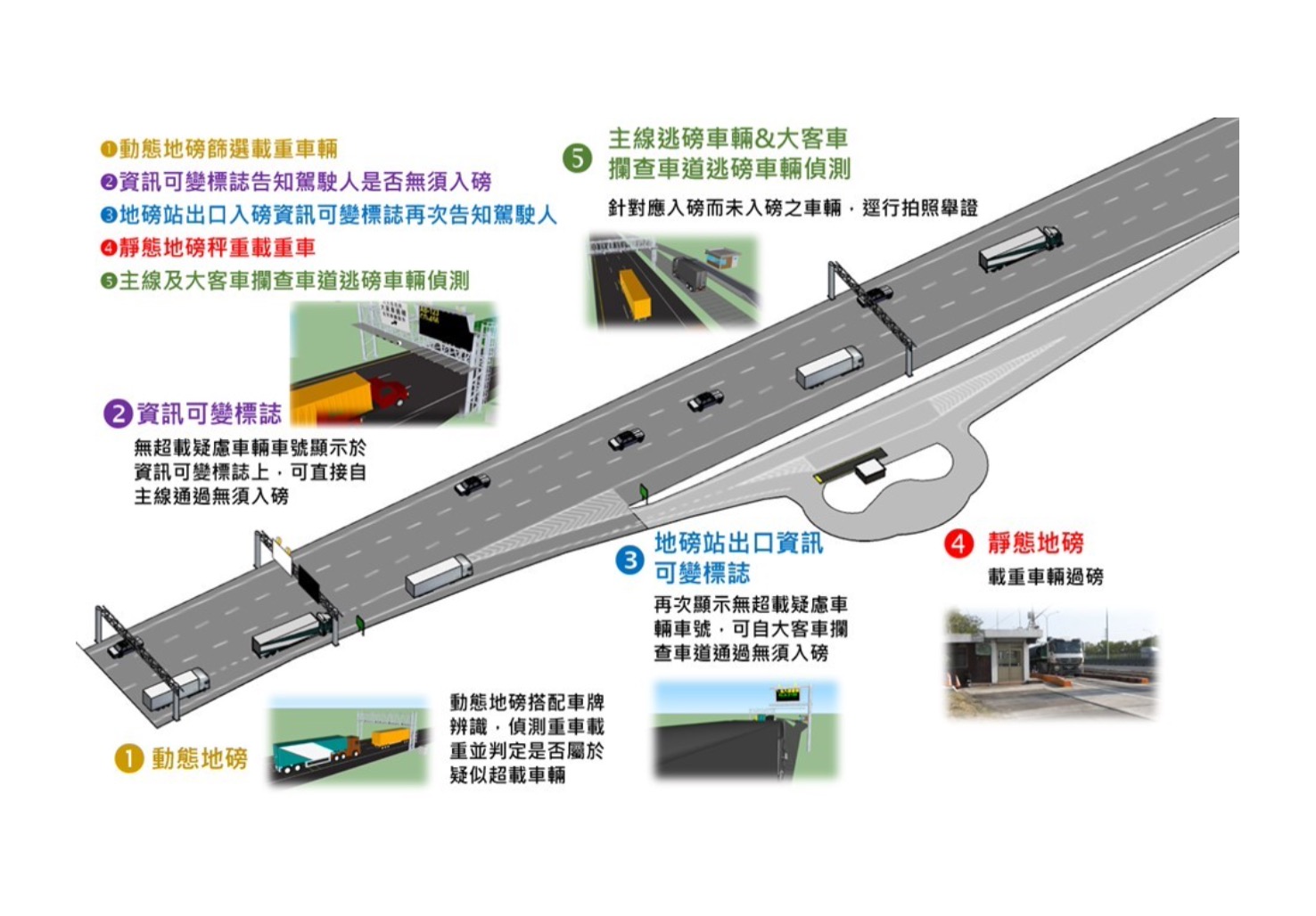 為防止大貨車超載影響行車安全,交通部高速公路局自 3 月 1 日起新增 3 處主線篩選式動態地磅系統: