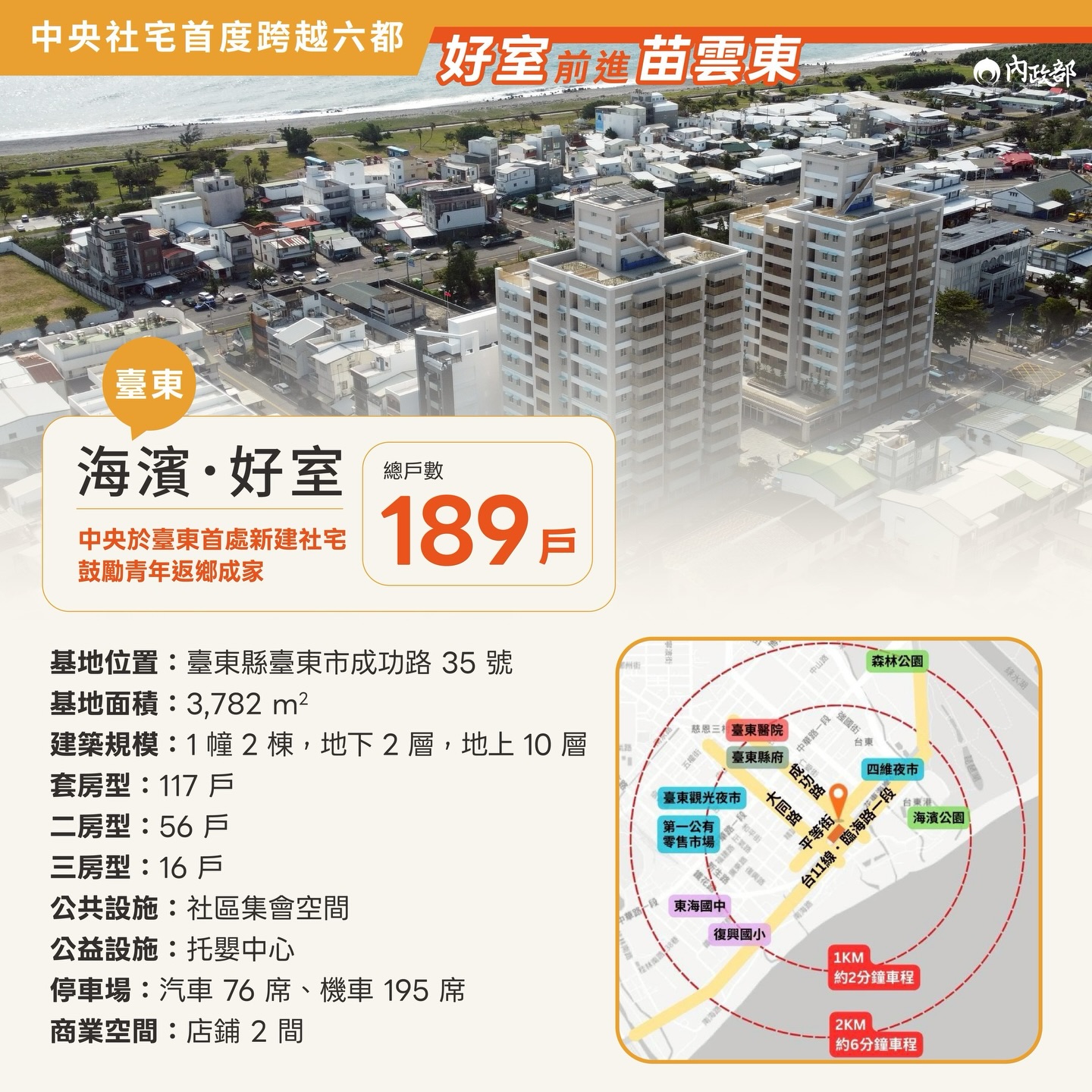 - 中央社宅-臺東「海濱好室」完整資訊:由此去。