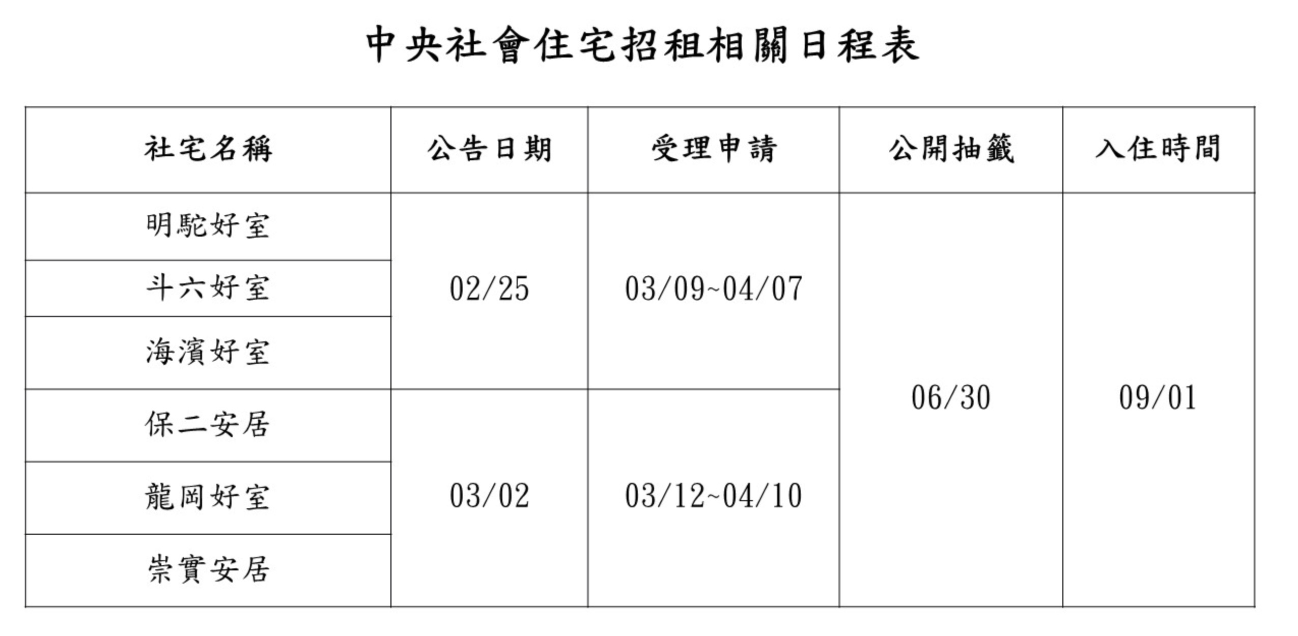 2026 中央社宅申請時間、抽籤時間、入住時間一次看