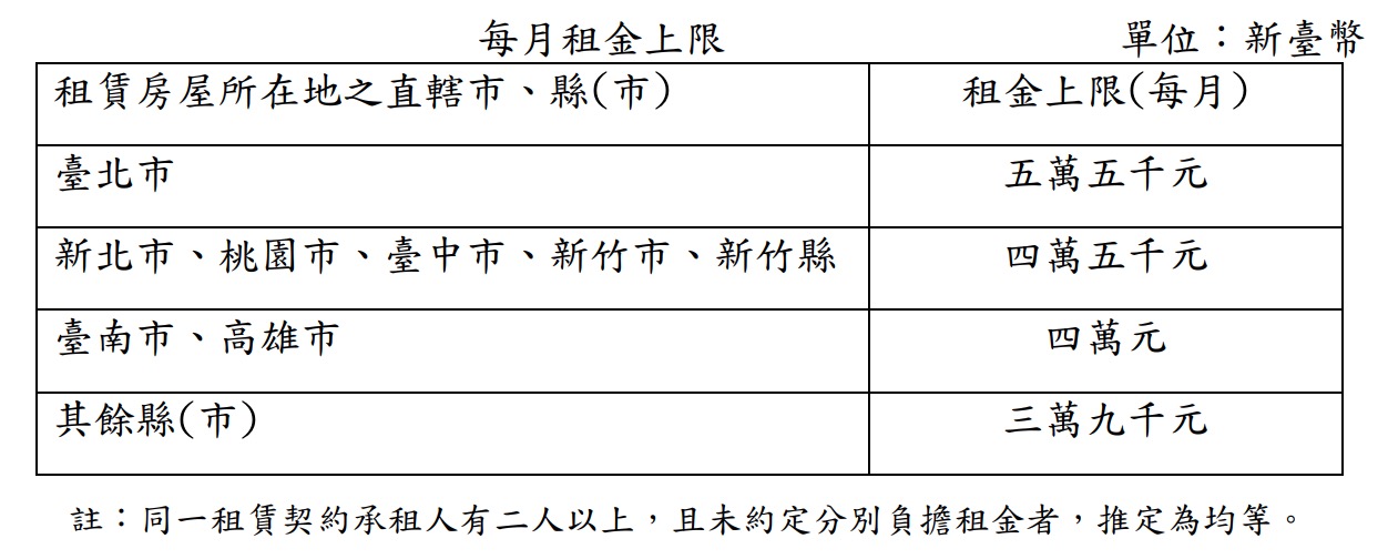 115 年租屋補助有規定各地租金上限,若租金超過標準,可能就不符合申請條件。實際金額需依公告下表認定。