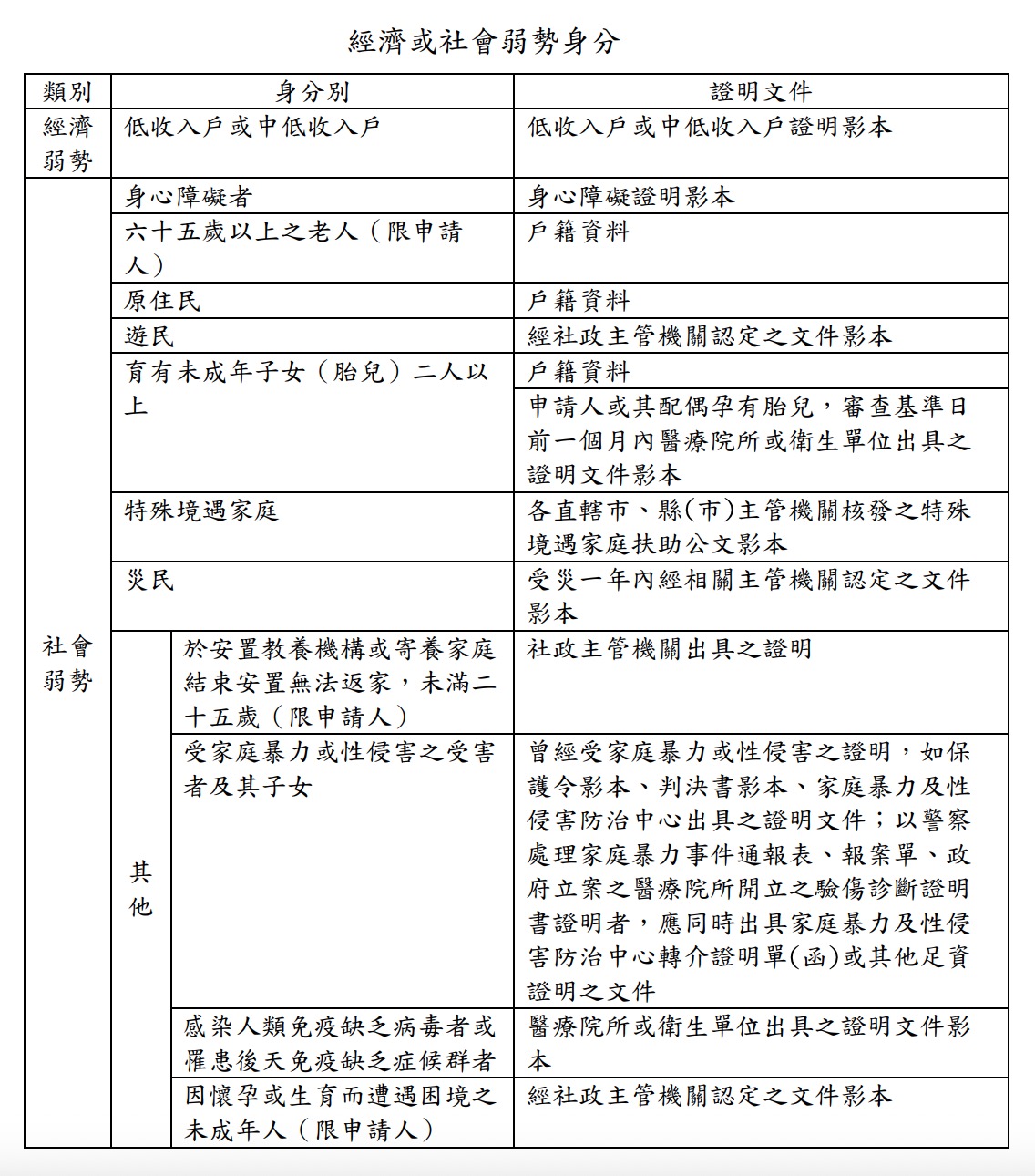 這次公告也有明確定義幾個常見身分類型,很多人申請時都會用到。