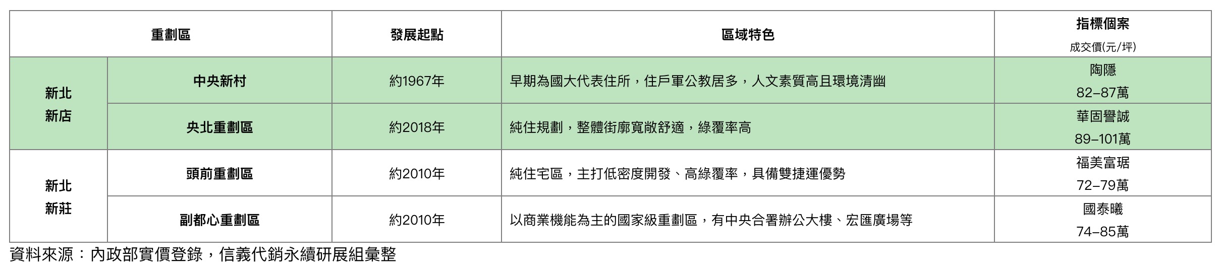 資料來源:內政部實價登錄,信義代銷永續研展組彙整