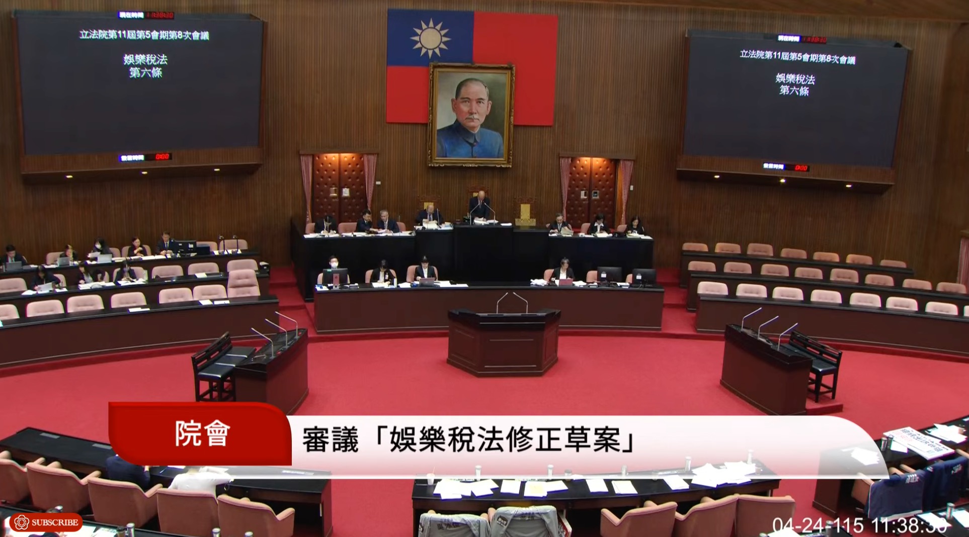 不過,到了立法院審查階段,朝野立委多認為,部分娛樂稅項目本身已不合理,應該直接刪除,因此最後三讀結果,是直接把電影、表演、音樂演出與各種競技比賽等項目的娛樂稅刪除。